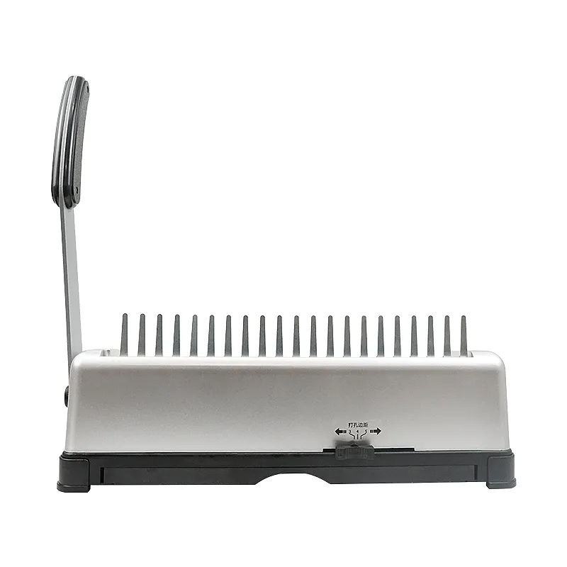 The A4 Clamp Strip Punching Machine operates by first positioning your document in the machine’s punching area. After setting the desired hole configuration, you use the handle or lever to punch through the pages. The machine produces 21-hole or 10-hole punches, depending on the project requirements, and then binds the document using clamp strips to secure the pages together. The binding process is fast and efficient, with each document being securely bound in just a few simple steps.