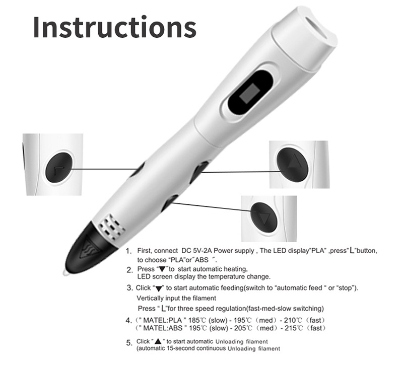 Equipped with advanced technology, the pen offers adjustable speed and temperature settings for precise control, making it easy to create intricate designs with various filament types. The ergonomic design ensures a comfortable grip for extended use, while the lightweight body allows for smooth, steady movement. Compatible with PLA and ABS filaments, this 3D printing pen offers endless possibilities for building, decorating, and learning.