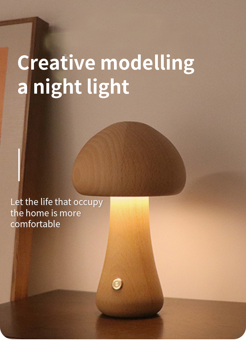 The Wooden Cute Mushroom Night Light is designed for practicality and ease of use.