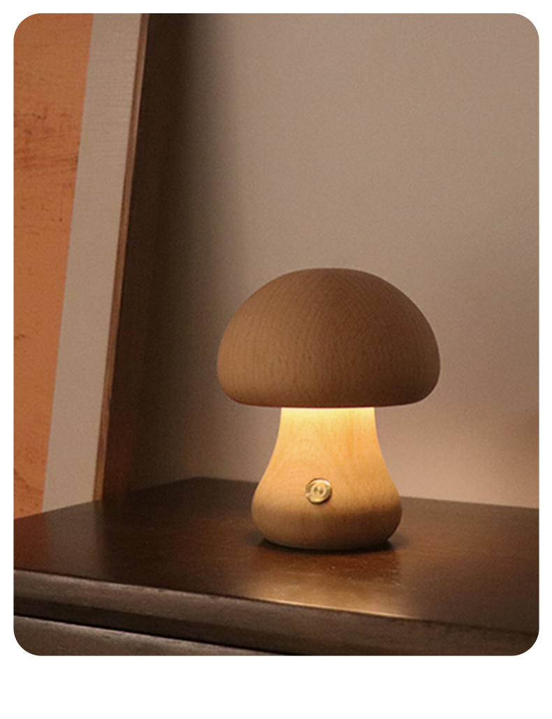 The Wooden Cute Mushroom Night Light is designed for practicality and ease of use.