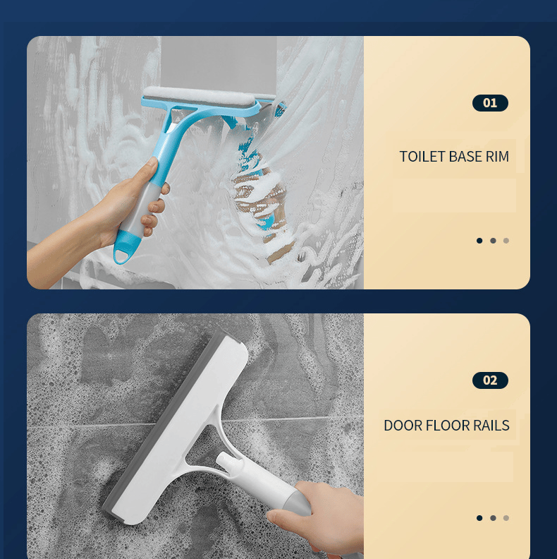 - Easily clean shower doors, windows, tile, mirrors, bathroom, kitchen, decks, patios, and many other surfaces with the versatile squeegee.