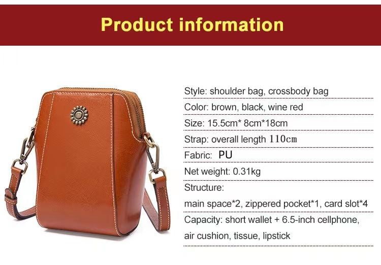 - [French All-match Shells Crossbody Bag ]:PU Leather material ,offers a good performance when it comes to protection to scuff and scratches, longevity, durability, water-resisting . Women's Soft Leather Mobile Phone Bag
