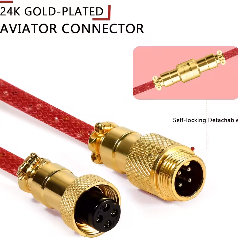 The aviator connection uses durable metal threading and high-precision pins for secure contact and stable data transmission. It also adds a sleek, industrial accent that complements any high-end gaming keyboard or setup.