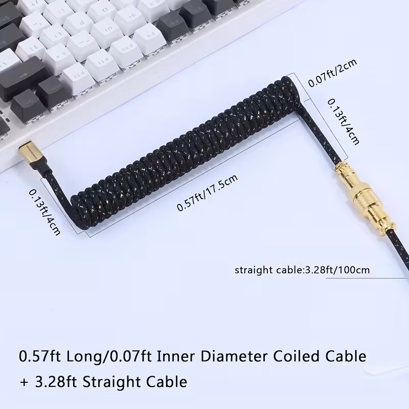 Add both performance and style to your gaming setup with the ATTACK SHARK C03 Coiled USB-C Cable, the perfect companion for mechanical and RGB keyboards. Designed for enthusiasts who value precision engineering, aesthetics, and durability, this cable combines starlight nylon braiding, double-sleeved protection, and a detachable metal aviator (pilot) connector for a premium look and feel.