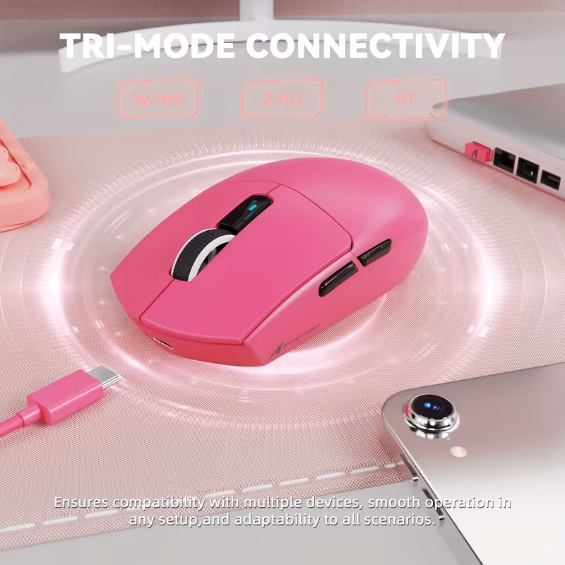 - Tri-mode connectivity (BT/2.4G/USB-C) for flexibility across devices