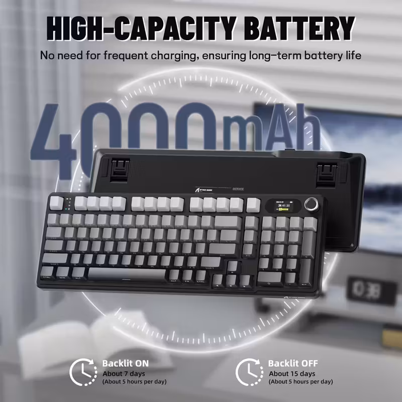 Efficiency meets endurance with the X98PRO’s intelligent power management system. The keyboard’s built-in rechargeable battery provides extended use on a single charge, allowing days of uninterrupted work or play.