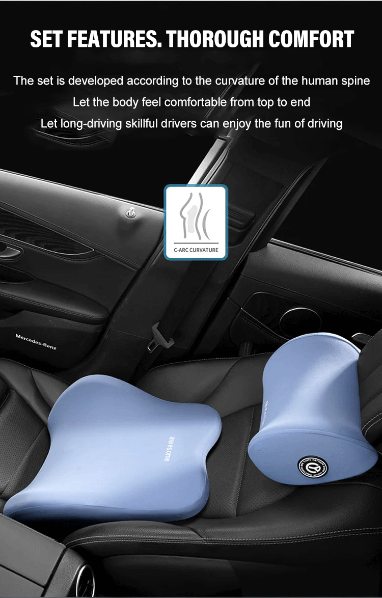 - 【Car Back Support Neck Pillow Kit】Car headrest & lumbar support cushion, ergonomic design, our waist and neck pillows perfectly fit the curves of the body, providing natural and comfortable support whether you are in a car, office chair or any other seat.