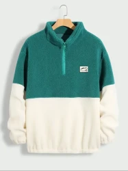 Warm Mens Polar Fleece Sweatshirt - Casual 1/4 Zip Pullover with Color Block Design - Soft, Stylish & Versatile for Everyday Wear
