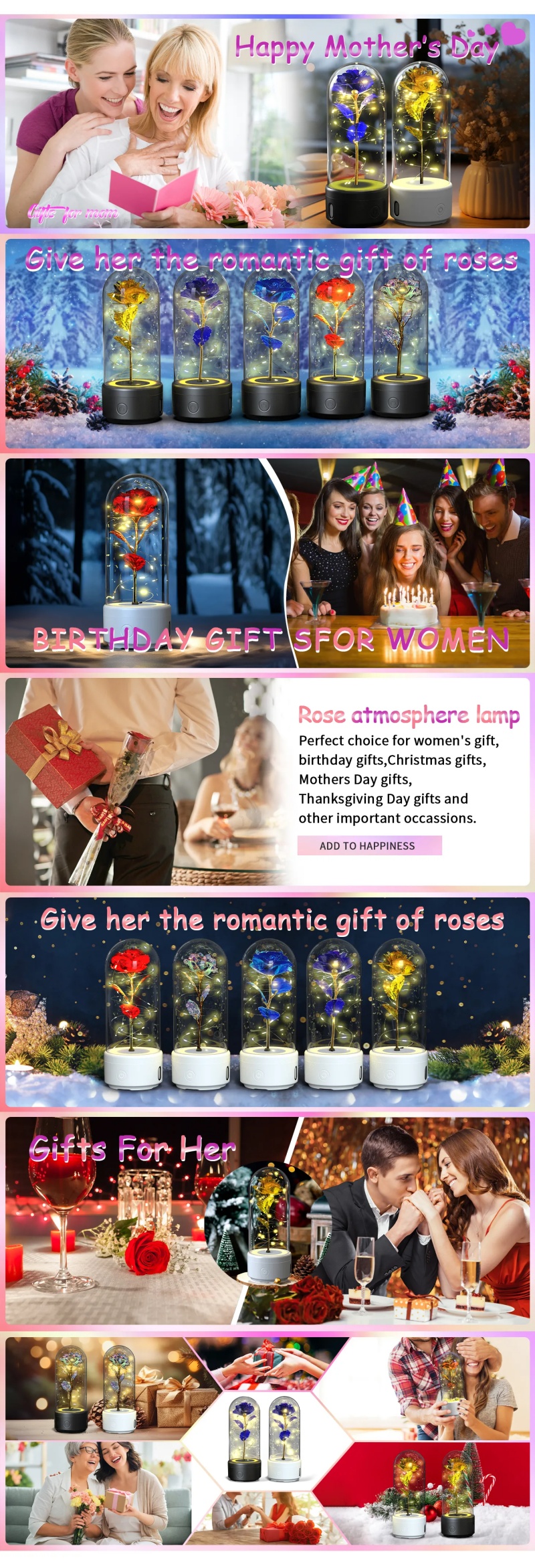 Looking for a thoughtful gift? The Creative 2-in-1 Rose Flowers LED Light and Bluetooth-Compatible Speaker makes an excellent present for birthdays, anniversaries, or housewarmings. Its unique design and multifunctionality are sure to impress any recipient.
