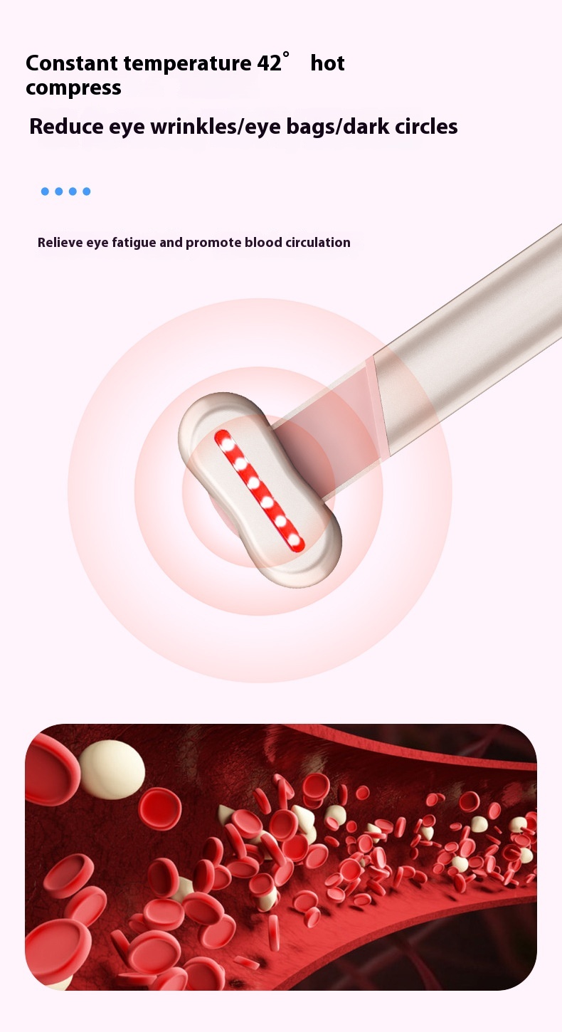 The instrument provides a gentle warm compress that helps to soothe tired eyes, reduce puffiness, and improve blood circulation. The warmth relaxes the muscles around the eyes, promoting a calming and rejuvenating effect.