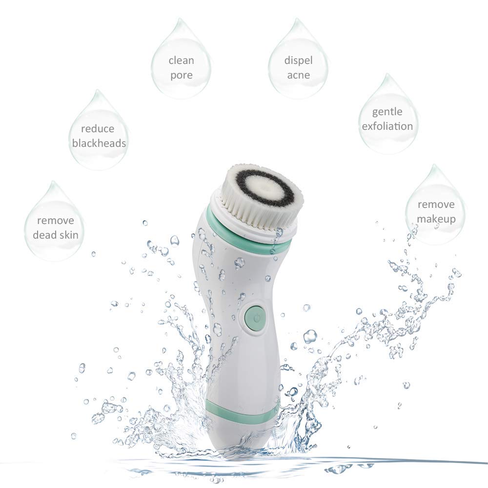 ● Complete 4-in-1 cleaning system-4 brush heads include exfoliating brush, soft cleaning brush, soft sponge and silicone brush. Suitable for all skin types and all your facial cleansing needs ● 2 SPEEDS with powerful spin rotation-free choice between daily deep scrub and gentle exfoliation ● Easy to carry-Comes in a compact storage box that you can take with you or use it at home ● Waterproof design-Waterproof shower IPX6 waterproof. Do not completely soak in water