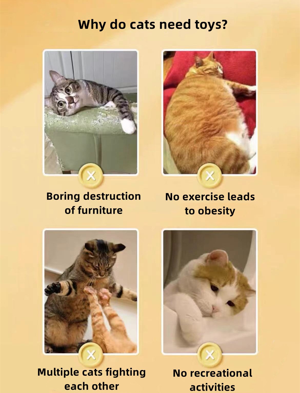 Stretchy shuttle tunnel, so that cats can be free to travel through it, both sides with the cat's favorite mice and feathers, respectively,