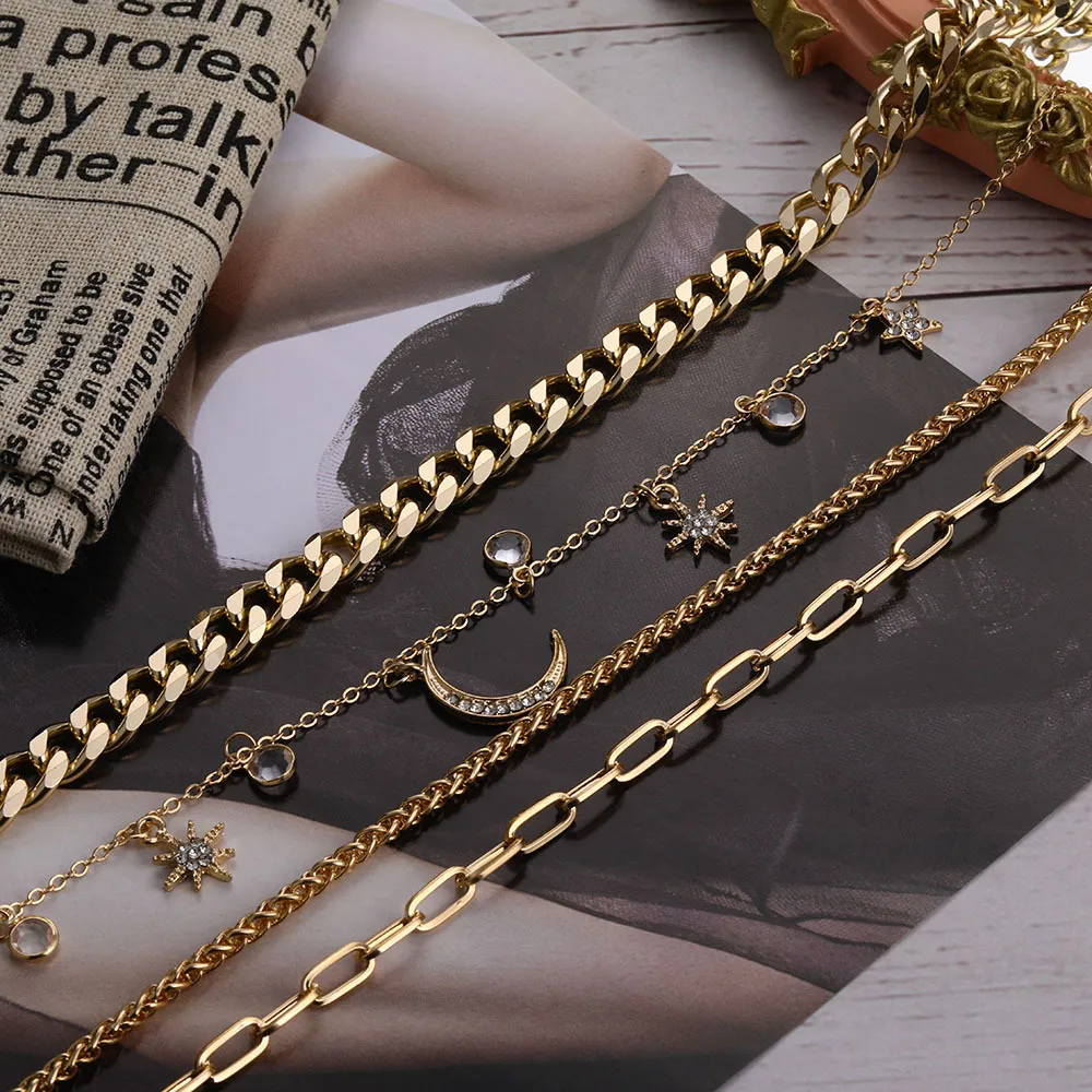 Korean Jewelry World Retro Moon Moon Star Crystal Multilayer Pendant Chain Necklace Cross-Border Exclusive Necklace