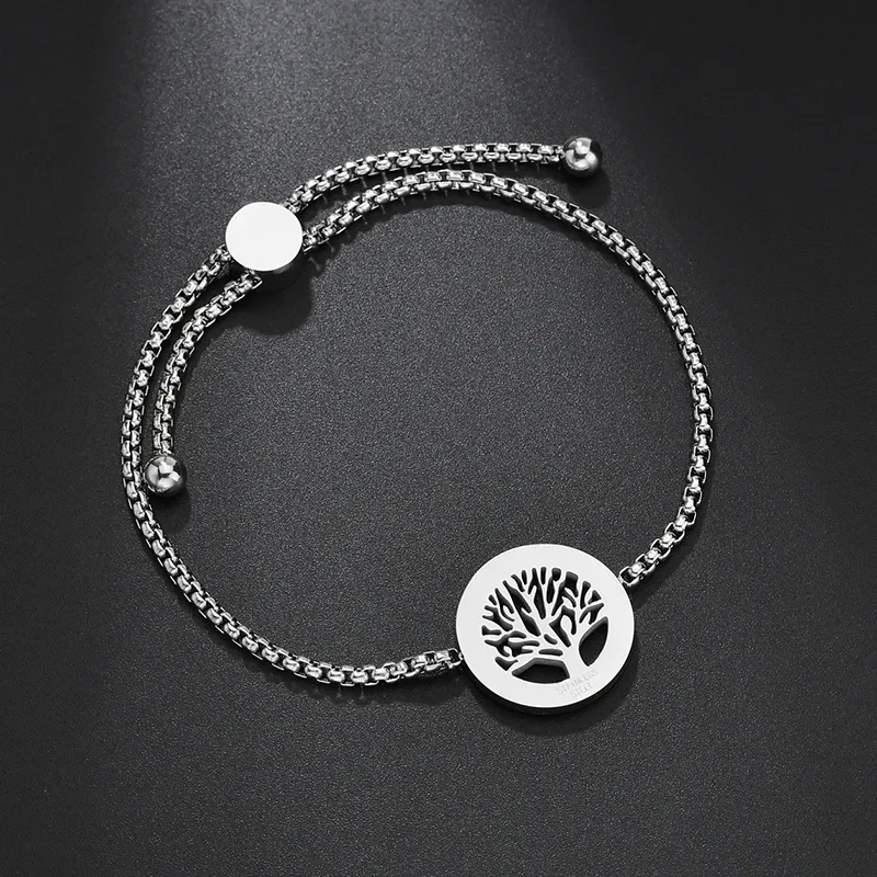 Nueva pulsera ajustable de acero inoxidable con forma de corazón y árbol: Un regalo atemporal de amor y familia