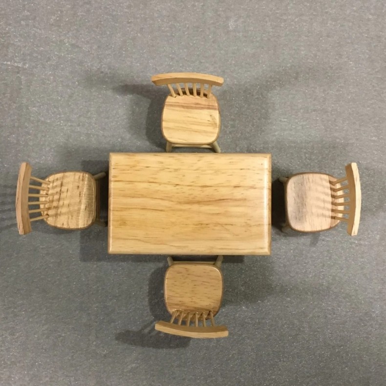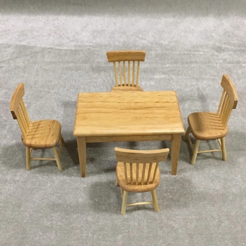Name: 1:12 Mini Wooden Square Dining Table and Chair Set of 5