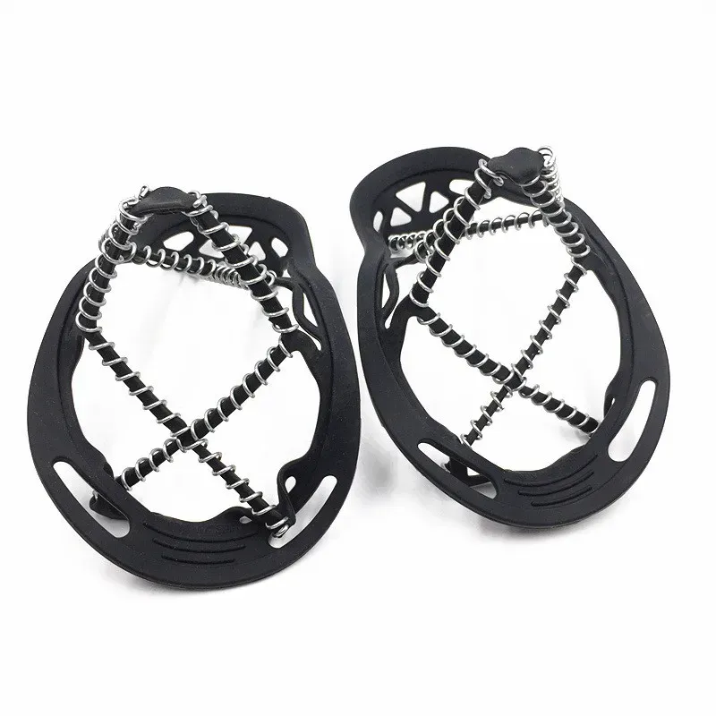 traction on ice, snow, and wet surfaces. The spikes dig into the ground to prevent slipping and enhance stability, keeping you safe during