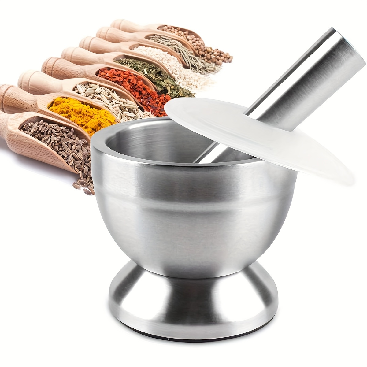 Whether you're grinding spices, herbs, or small grains, the large pestle and deep mortar make it easy to crush, mix, and grind with precision. The stainless steel construction ensures the tool is easy to clean and will not absorb odors or stain over time, keeping it hygienic and safe for repeated use. Whether you're creating your own spice mixes or preparing fresh ingredients for cooking, this mortar and pestle set offers a reliable solution for all your grinding needs.