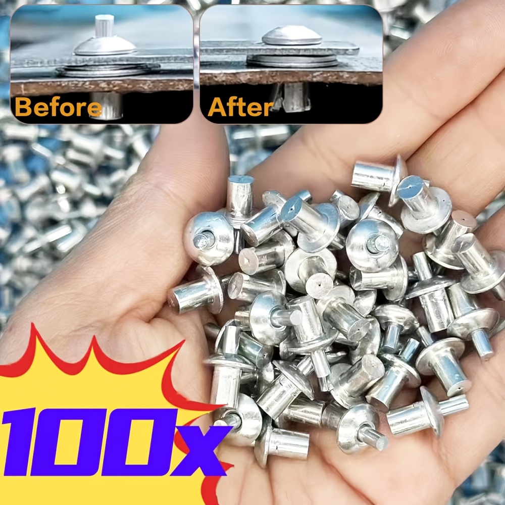 100 Pcs Pack: This bulk pack of 100 rivets ensures you have plenty of fasteners for multiple projects, saving you time and money.