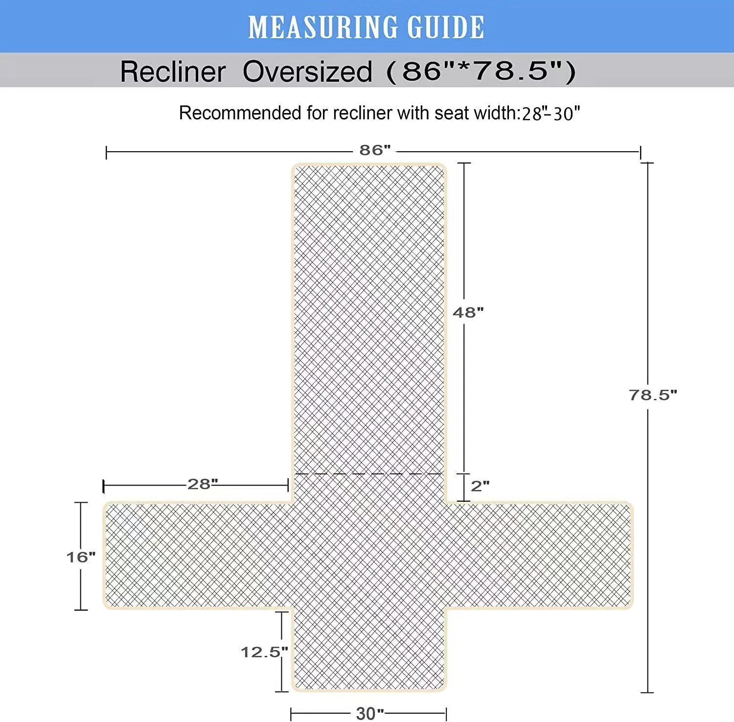 Dimension Guide: The recliner furniture protector recliner fits a seat width of 23.6 in. Recliner loveseat fits a seat width of 48 in. (2 pieces design, 24" per seat size). Recliner sofa fits a seat width of 72 in. (3 pieces design, 24" per seat size). Please measure before purchasing, see the measuring guide in the photo.