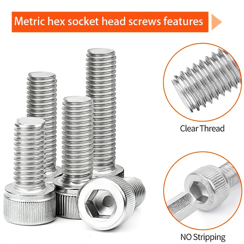 Hex Socket Cap Heads and Allen Wrenches: Designed for a secure grip and easy tightening with the included Allen wrenches, ensuring reliable fastenings.