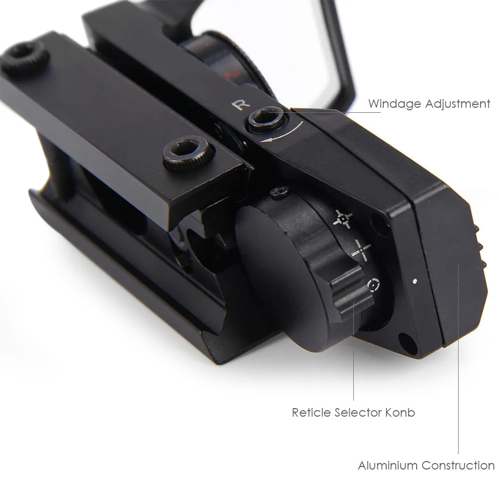 -installed 4 different reticles (Dot Circle, Cross, 10 and 3 MOA MOA) for maximum versatility.