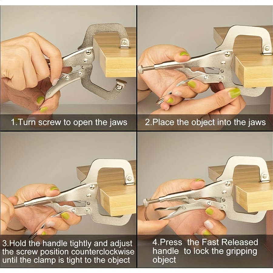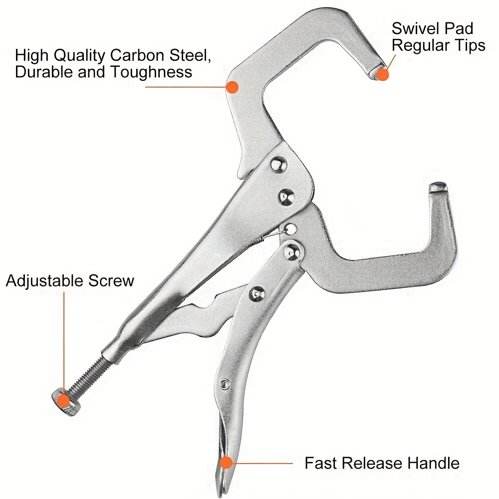 With its grip handle, this tool ensures comfort and ease of use, reducing hand fatigue even during long working hours. The locking mechanism holds materials securely, allowing you to focus on the task at hand without worrying about slippage or adjustments. Whether you're welding, clamping wood for cutting or sanding, or completing general workshop repairs, this locking pliers C-clamp is built for both precision and power.