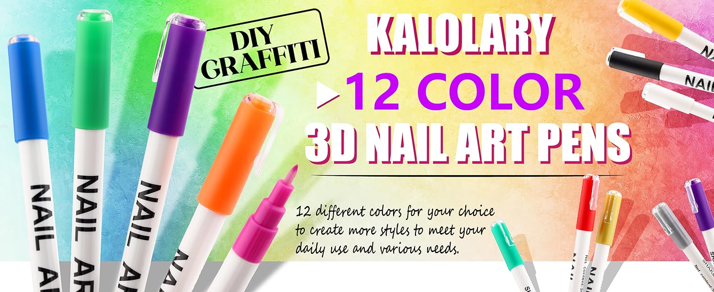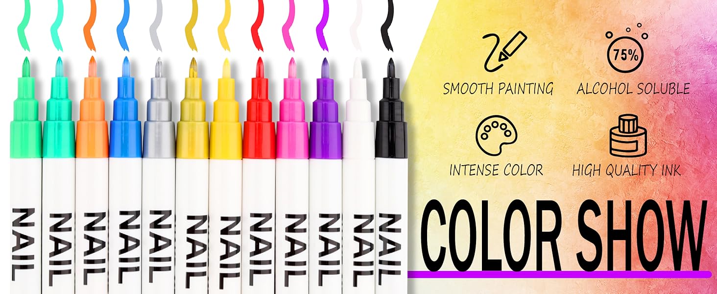 Vivid Colors + Bonus Accessories:Create instantly! 12 vibrant shades including gold/silver metallics. Perfect for Nail graffiti art. Cater