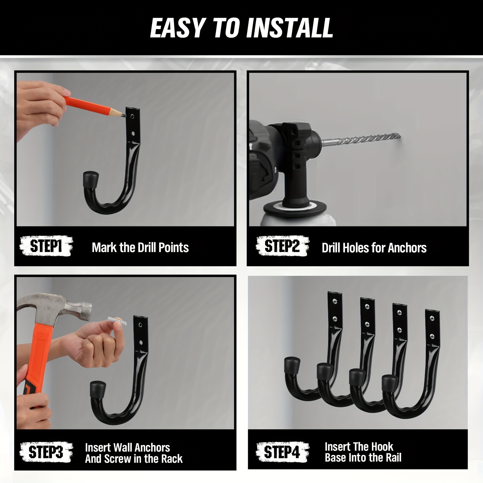 Perfect for Heavy-Duty Items: Designed to hold ladders, tools, and other heavy equipment securely, these hooks are perfect for both home and professional use.