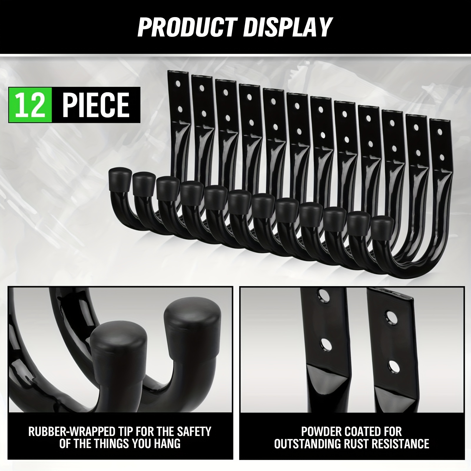Description – 12pcs Heavy-Duty Powder-Coated Metal Garage Storage Hooks