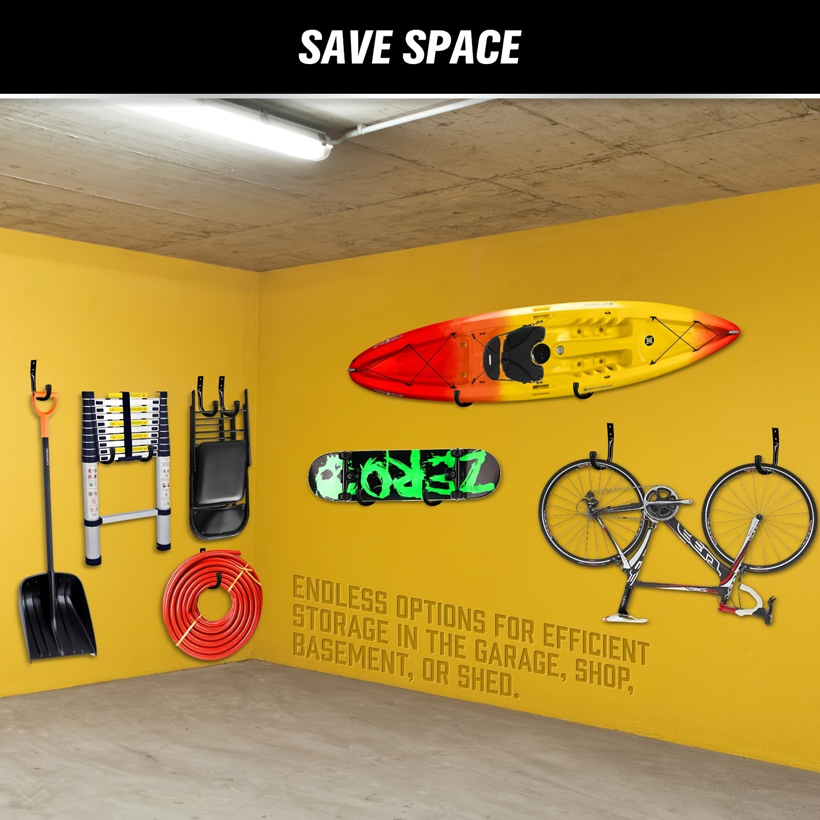 Organize Your Space: These hooks help maximize storage by allowing you to hang and organize bulky tools, ladders, and other items off the floor, keeping your workspace clean and efficient.
