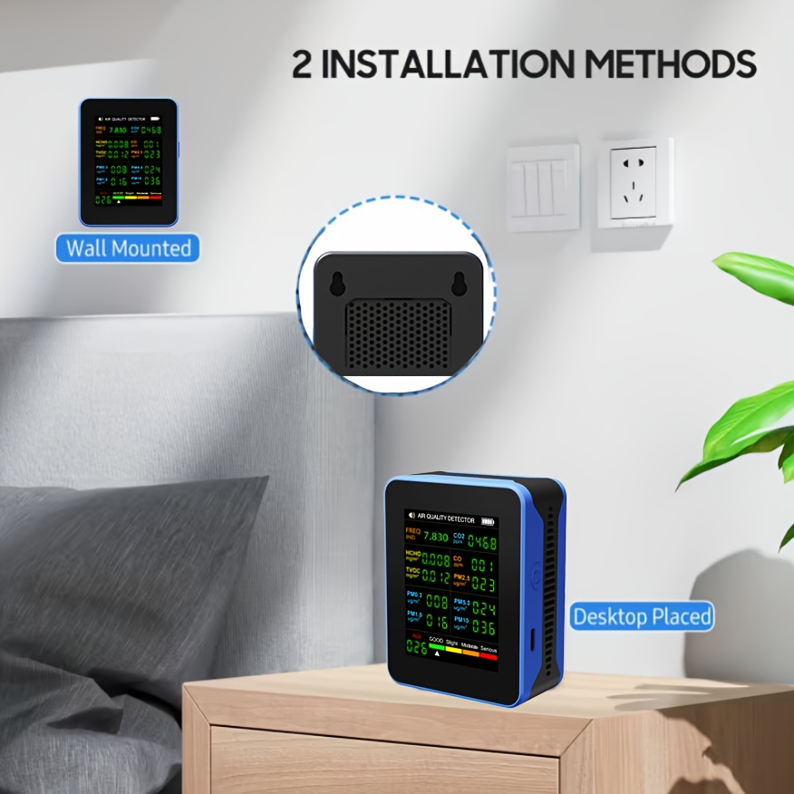 The 13-IN-1 Schumann Waves Air Quality Detector with 7.83Hz Ultra-Low Frequency Pulse Wave, CO2, PM2.5, PM10, PM1.0, PM0.3, PM5.0, HCHO, TVOC, AQI And CO, Rechargeable Battery, USB Powered for Home, Travel, Office, And Indoor Use is a multifunctional environmental monitoring device designed to provide comprehensive insights into indoor air conditions. As indoor air quality becomes an increasingly important factor in health and wellbeing, having access to reliable environmental data can help individuals understand potential pollutants and maintain healthier living spaces.