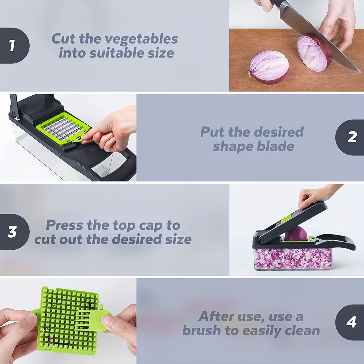 - Time-Saving: This cutter speeds up food preparation, allowing you to quickly chop and slice ingredients for meals, saving you time and effort in the kitchen.