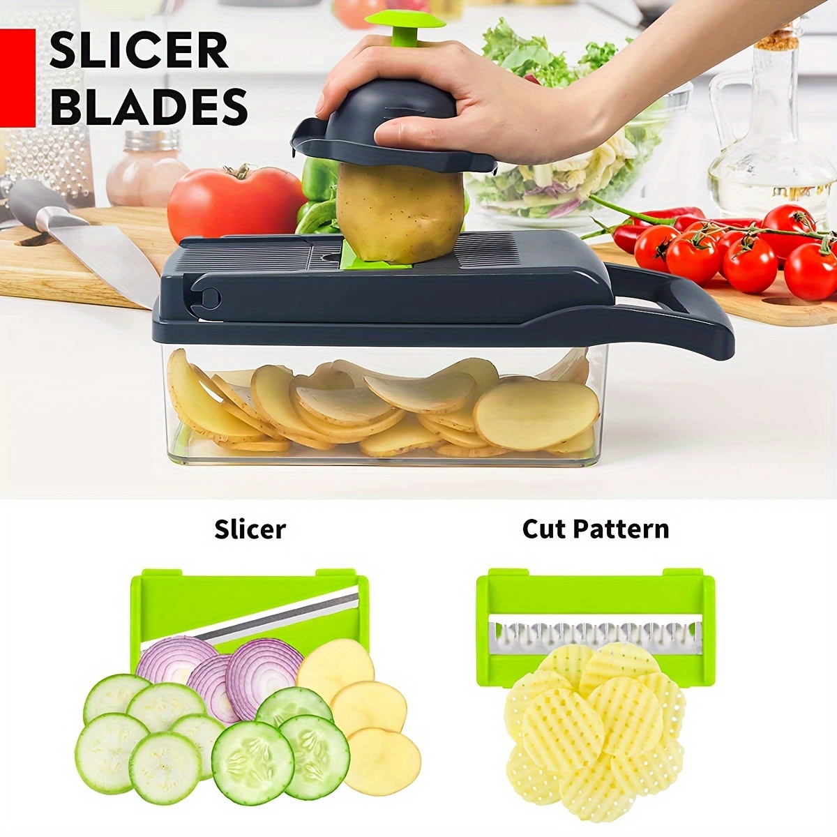 - Multi-Functionality: The 14-in-1 design makes this slicer versatile, providing a solution for all your cutting needs without needing multiple tools.