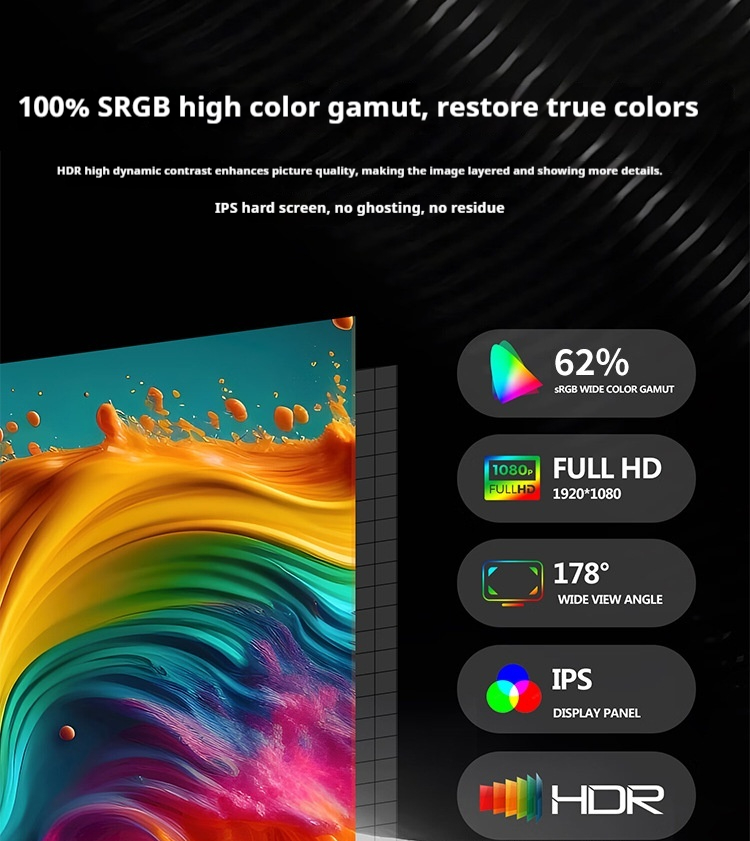 Enjoy sharp, vibrant images and text with the high-definition display of the portable monitor. Whether you're watching videos, editing photos, or working on presentations, the screen’s crystal-clear resolution enhances your experience, making it easier to work for longer periods without straining your eyes.