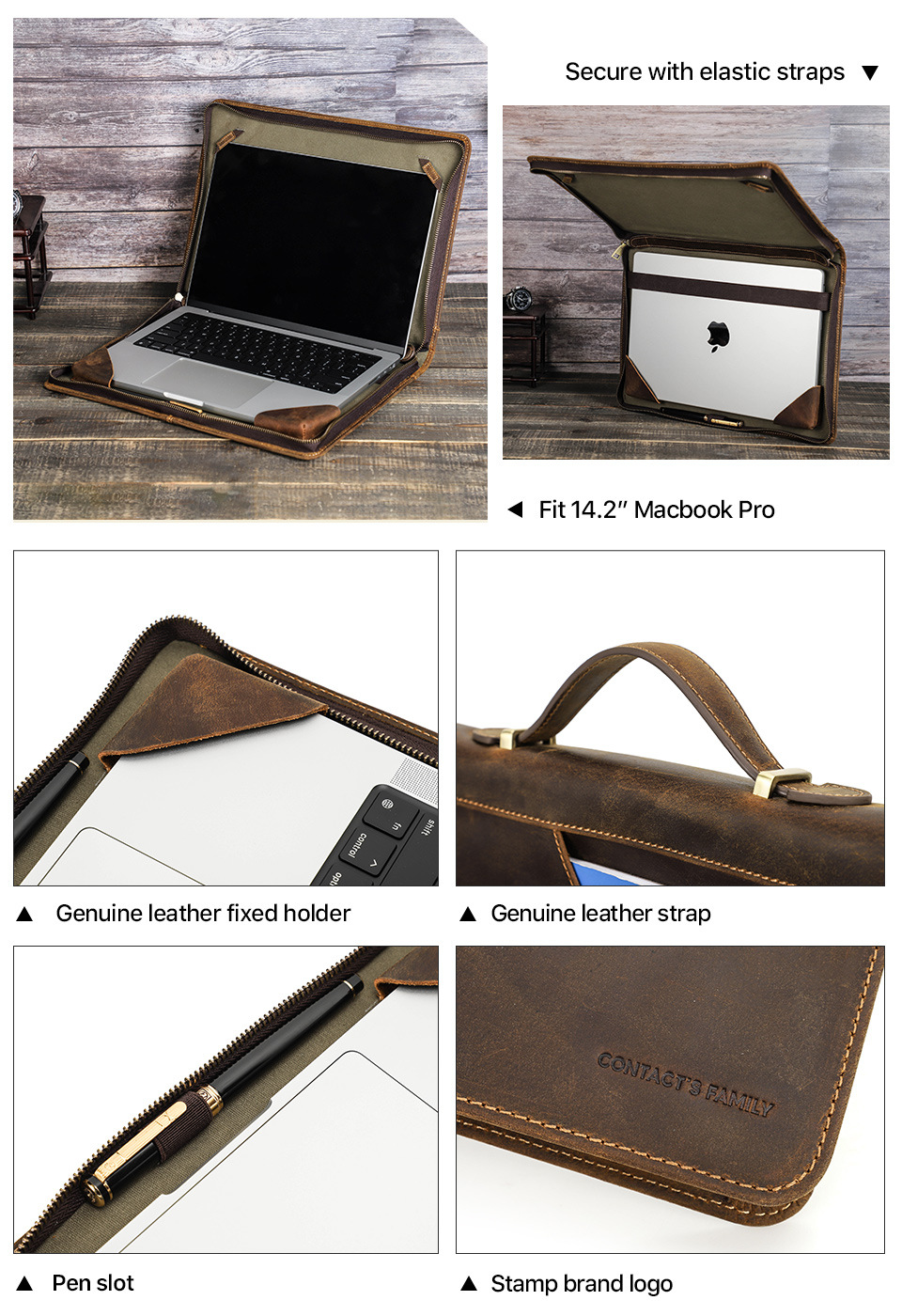 14.2-inch Genuine Leather Protective Case Laptop Handbag