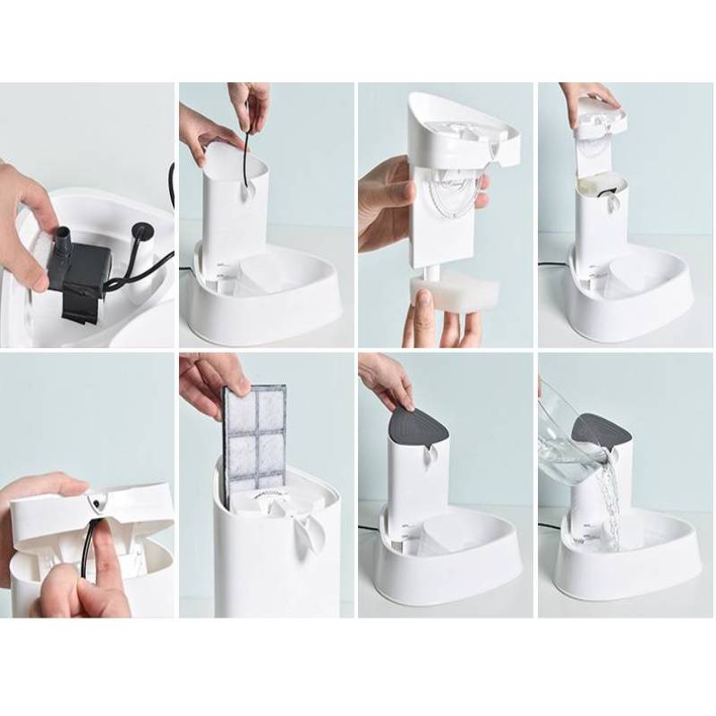 Keeping the pet water fountain clean is essential for ensuring your cat always has access to fresh water. The design of this fountain makes it easy to disassemble, clean, and maintain. The removable parts, including the water tank, fountain head, and filter tray, can be cleaned with ease. Simply rinse the components with warm water and replace the filter every 2-4 weeks for optimal performance.