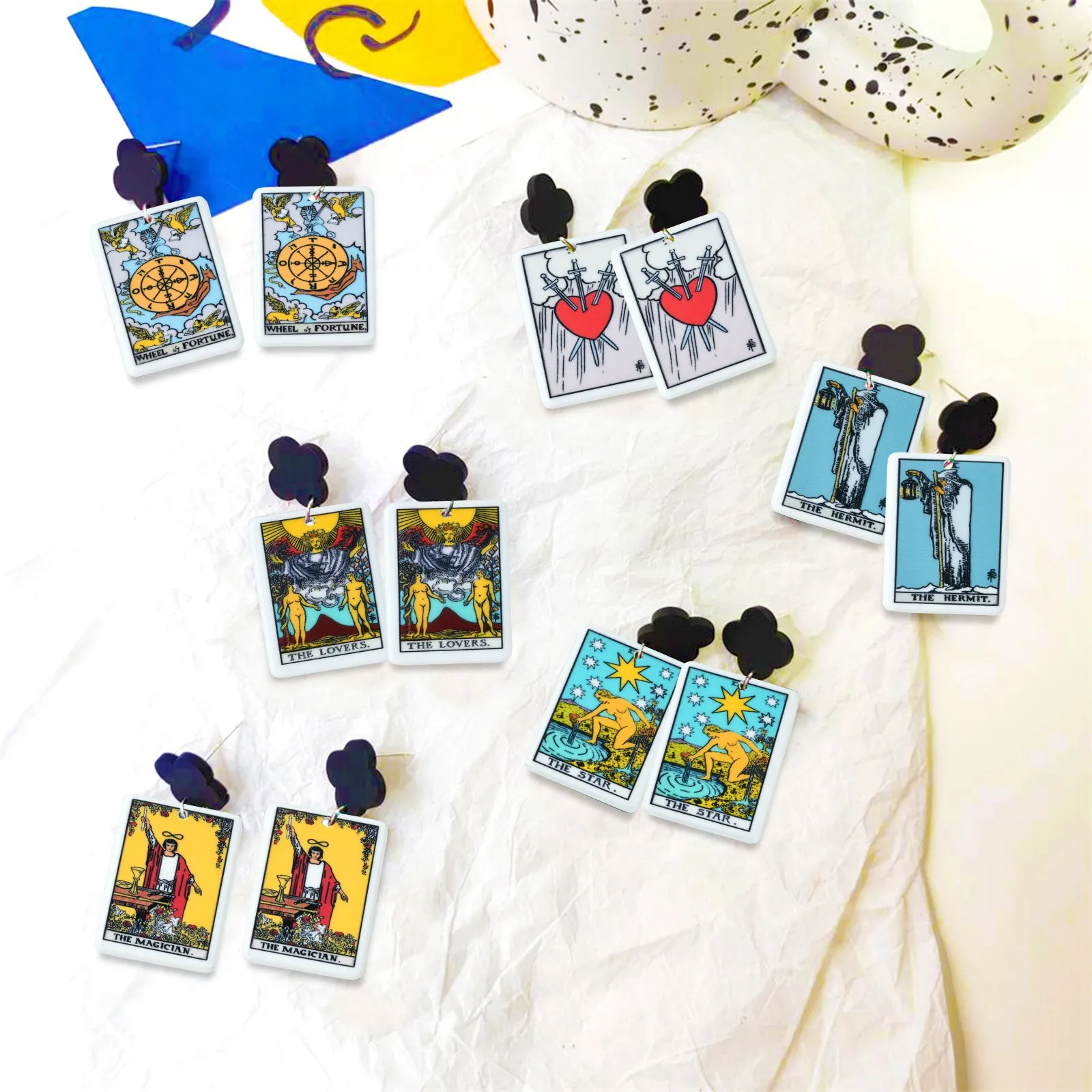 16Pcs 8 Styles Acrylic Tarot Card Charms Sun Moon Star Tarot Charms Divination Rectangle Tarot Pattern Charms for Jewelry Making