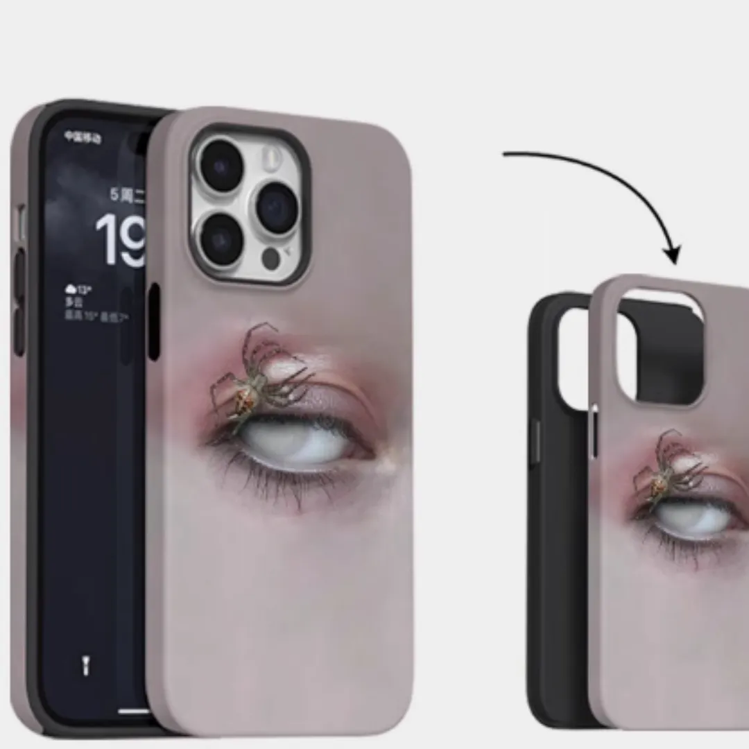 The Dark Heterochromatic Spider Phone Case is designed for iPhone 16 Pro Max and 15 Pro, blending unique artistic design with rugged protection. The striking spider-inspired heterochromatic pattern gives your phone a bold, edgy style that stands out, while the durable construction ensures your device is protected against drops, scratches, and everyday wear.