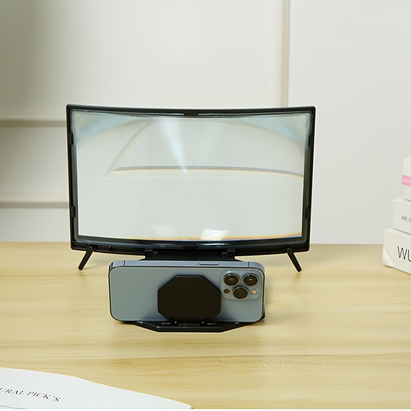 The curved lens design of the 18-inch 3D Pull-out Mobile Phone Screen Magnifier, High-definition Curved Magnifying Glass, Lazy Holder, Comfortable Viewing ensures uniform magnification across the entire screen, reducing distortion and delivering sharper images. This technology allows users to enjoy content with improved depth and enhanced color layers.