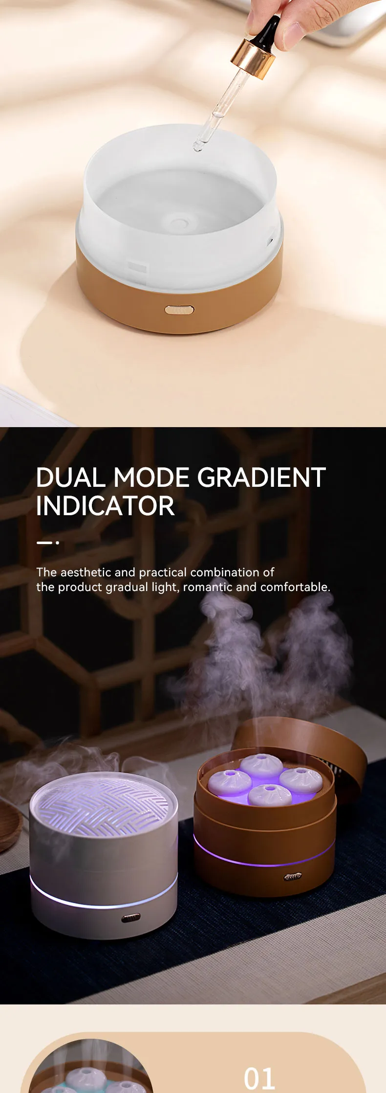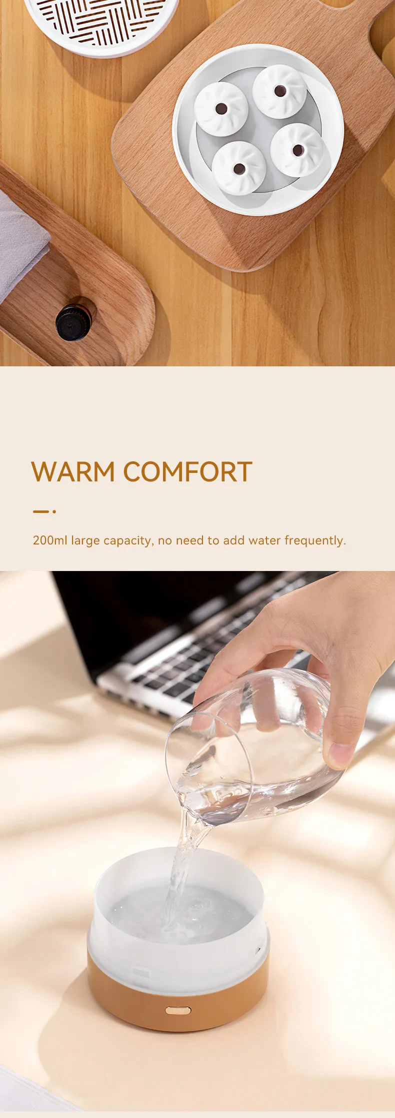1pc Unique Four Spray Design Steaming Bun Aroma Diffuser 200ml USB Ultrasonic Air Humidifier LED Night Light Essential Oil Diffuser Aromatherapy Diffuser For Home Office