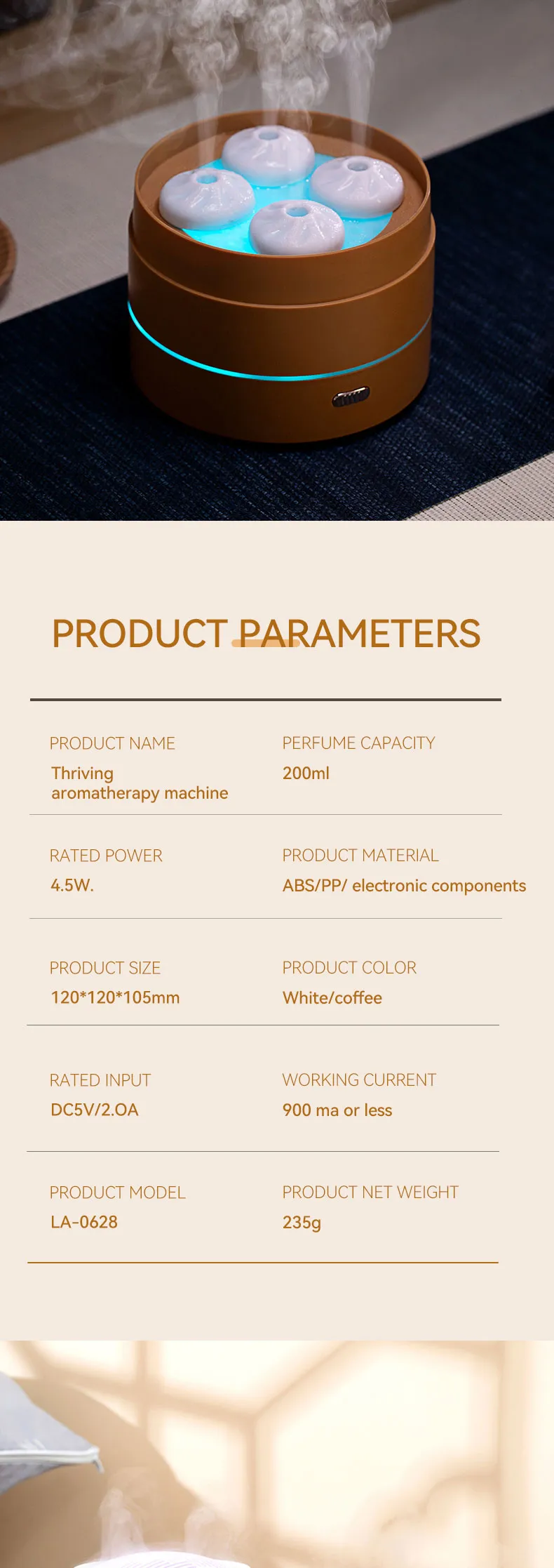 1pc Unique Four Spray Design Steaming Bun Aroma Diffuser 200ml USB Ultrasonic Air Humidifier LED Night Light Essential Oil Diffuser Aromatherapy Diffuser For Home Office
