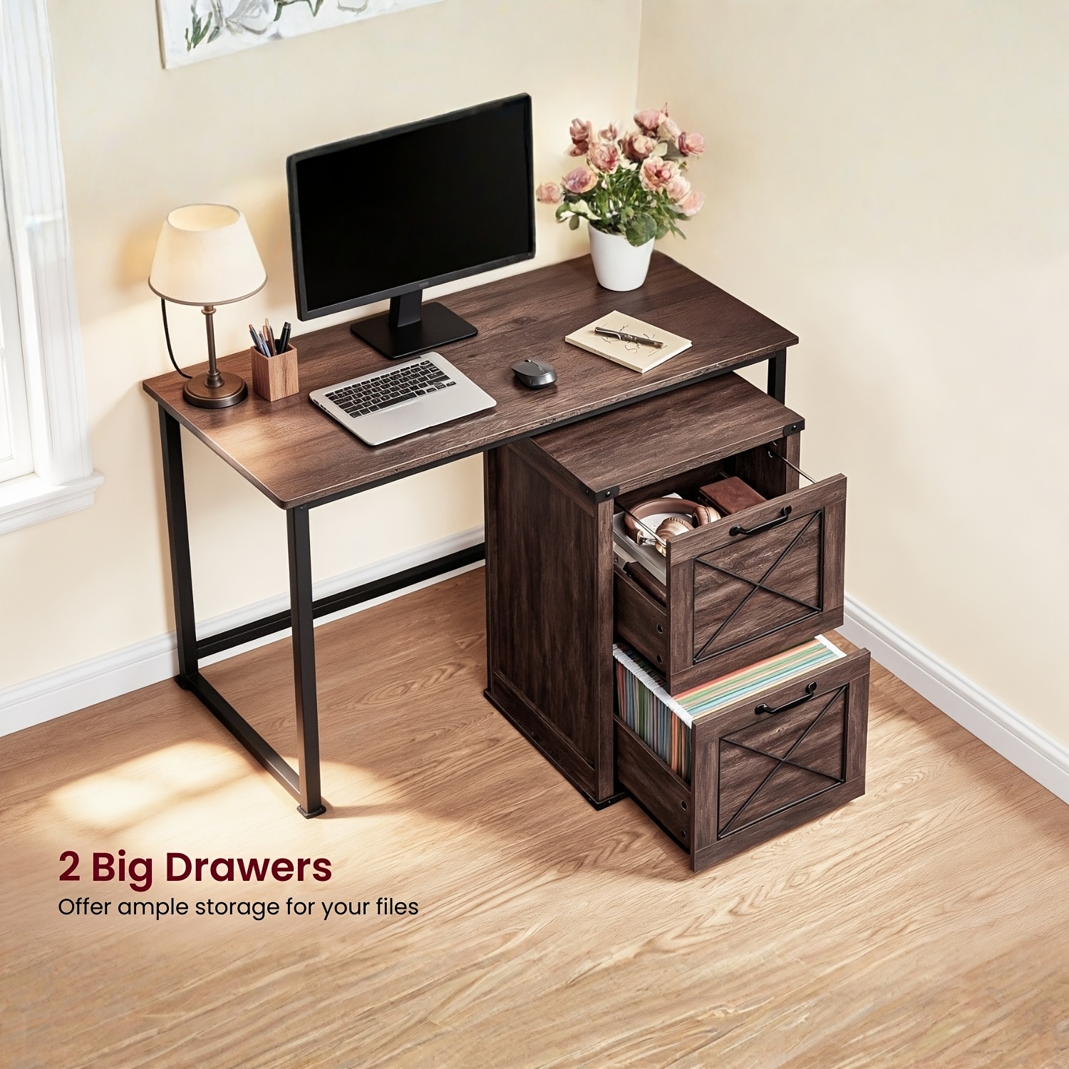 - 2 Drawers for Storage: The two spacious drawers offer ample space to store files, office supplies, or personal items, helping you keep your space neat and organized.
