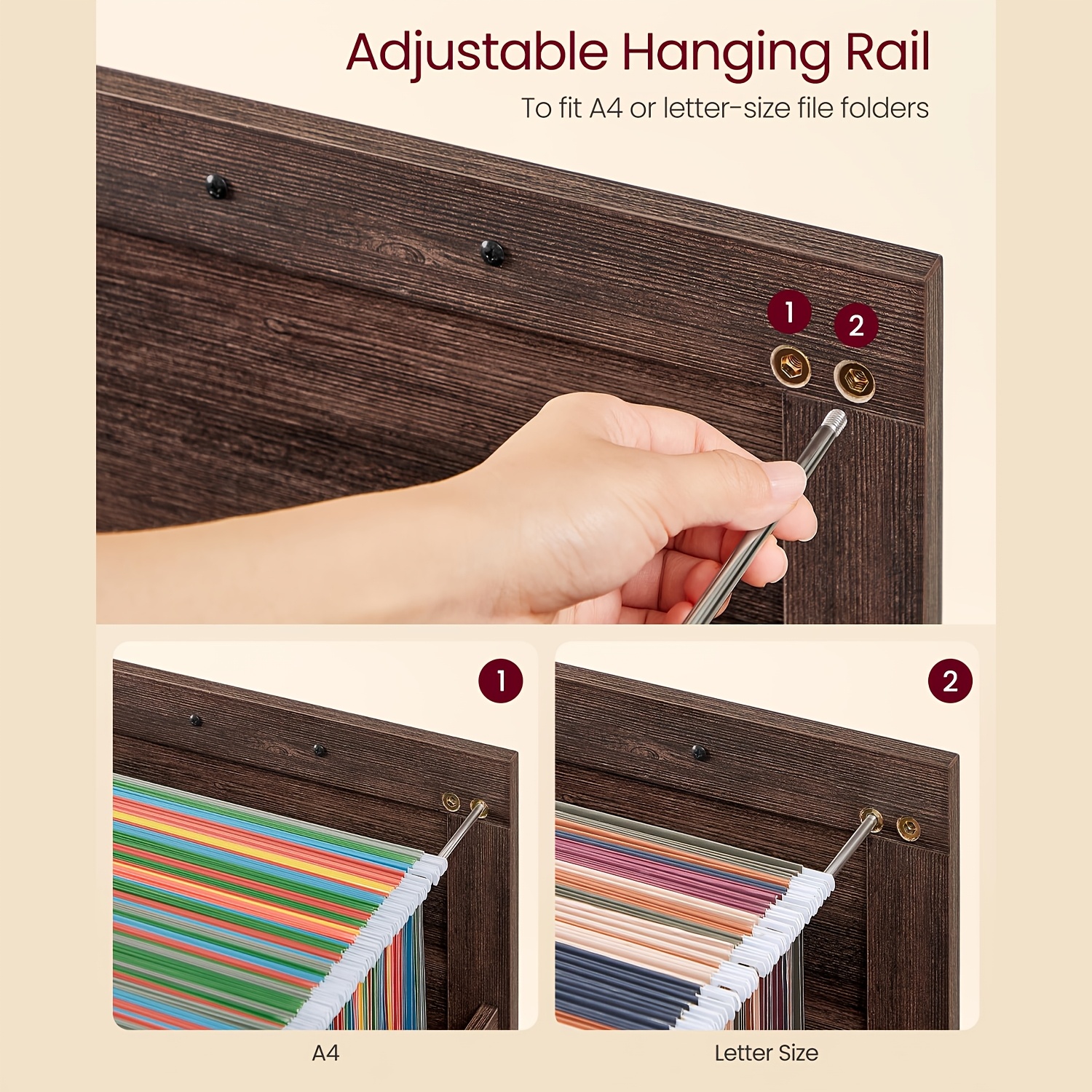 Adjustable Hanging Rail for Versatile File Organization: Adjustable rail fits both A4 and Letter-size folders for flexible and easy file management.
