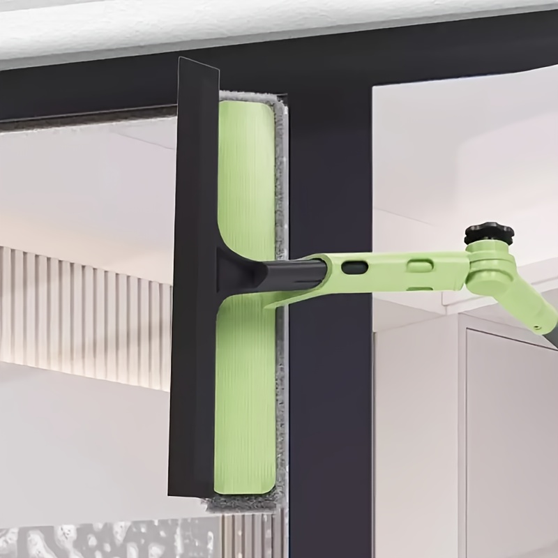 This adjustable head makes the 2-in-1 Dual-Sided Window and Floor Cleaning Brush Set with Telescopic Handle - Multi-Purpose Manual Squeegee for Glass, Patio, and Household Use, No Electricity Needed, Ideal for Indoor and Outdoor Cleaning suitable for vertical windows, horizontal glass panels, and even floor surfaces.