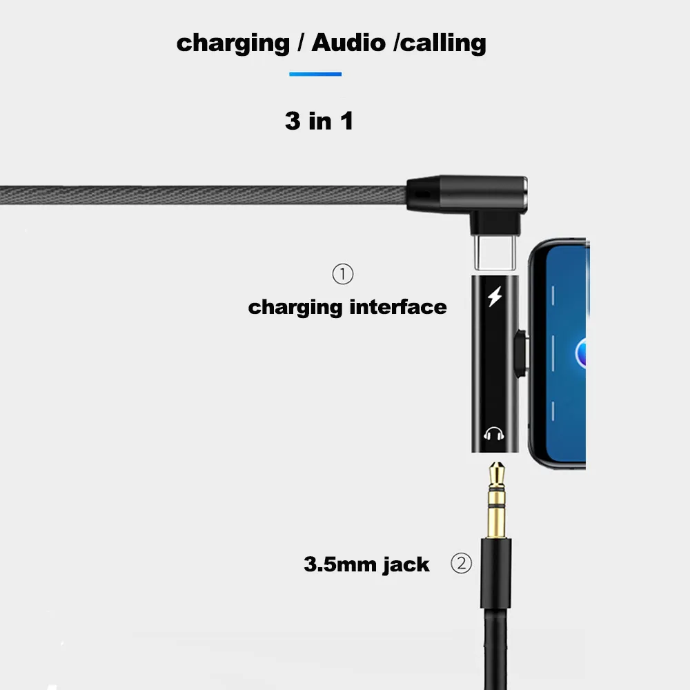 2 in 1 for Type C device adapter (charge + listen / call).