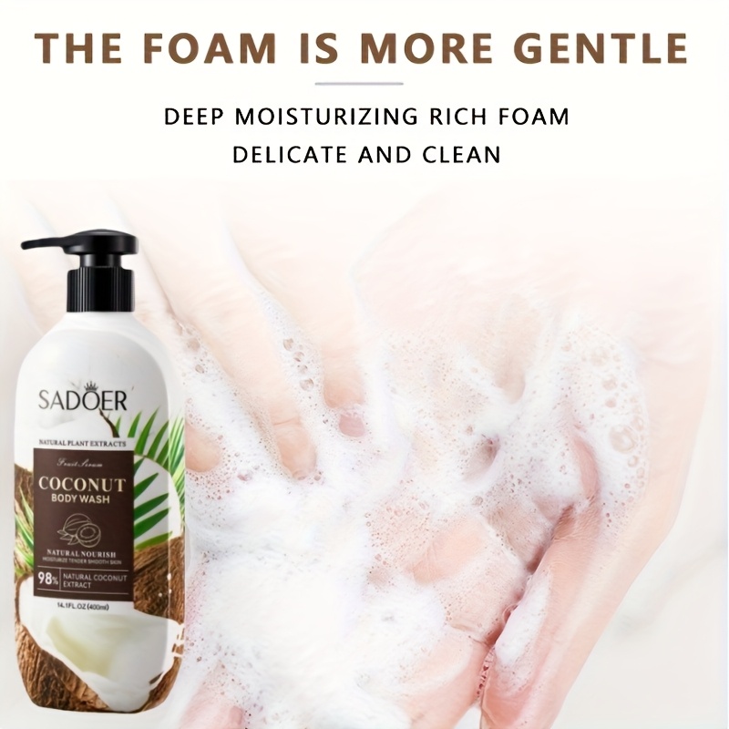 For soft, hydrated, and smooth skin, Sadoer Coconut Body Wash is your go-to bath essential. Its natural coconut extract formula cleanses, nourishes, and moisturizes, leaving your skin fresh, smooth, and delicately scented.