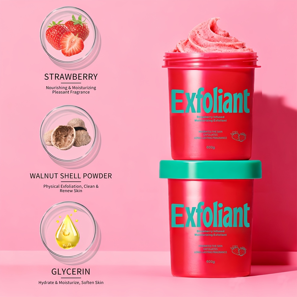 The strawberry-inspired formula adds a fresh, pleasant fragrance that enhances the body care experience. The rich, whipped texture spreads easily across the skin, allowing controlled exfoliation without harsh scrubbing. As you massage the exfoliant in circular motions, it helps polish the skin while leaving it feeling nourished rather than dry.