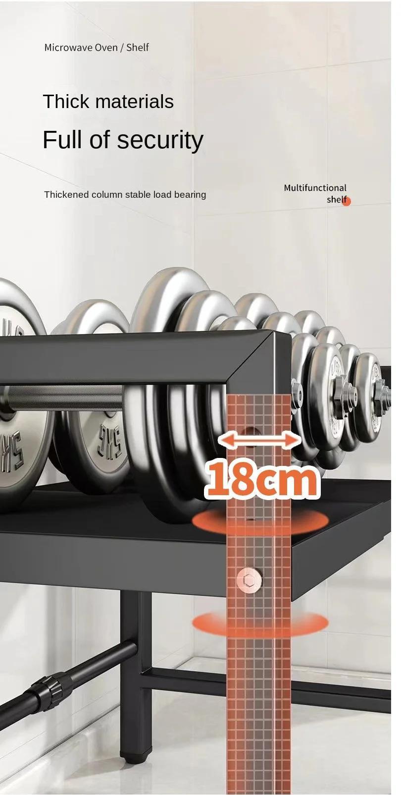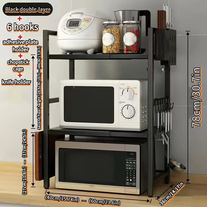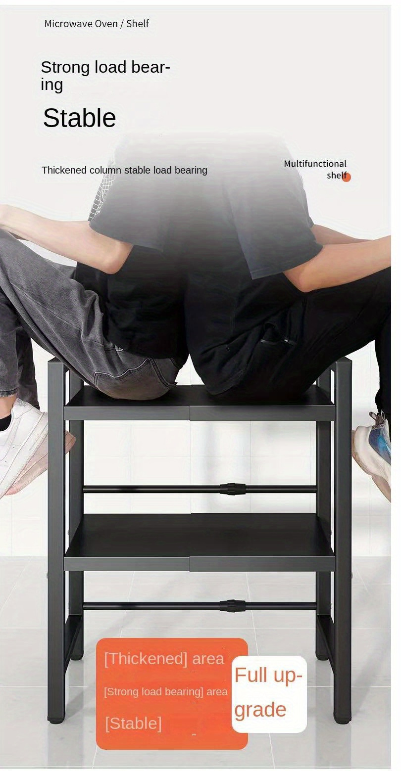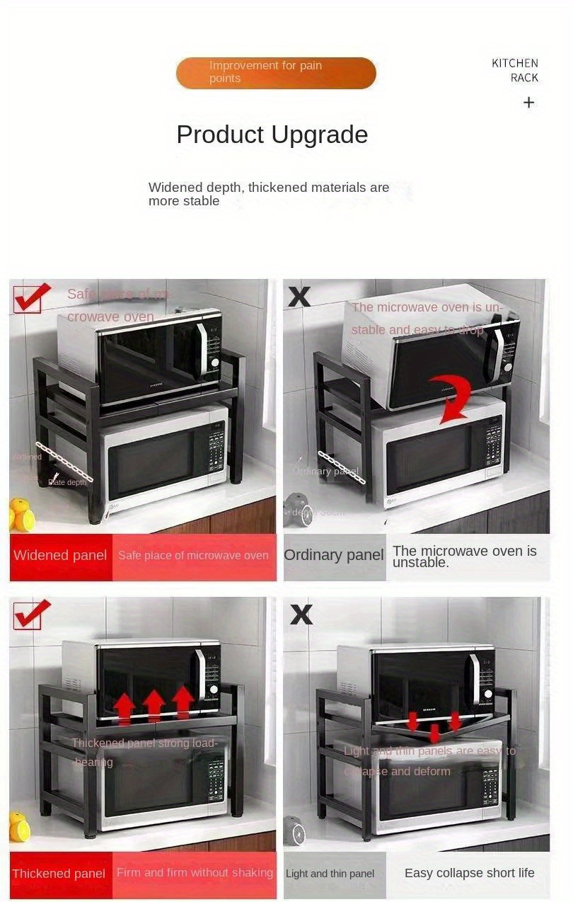- Expandable Double-Tier Design: The expandable design ensures that the rack can accommodate larger appliances such as microwaves or rice cookers, while providing extra space for smaller items on the lower shelf.