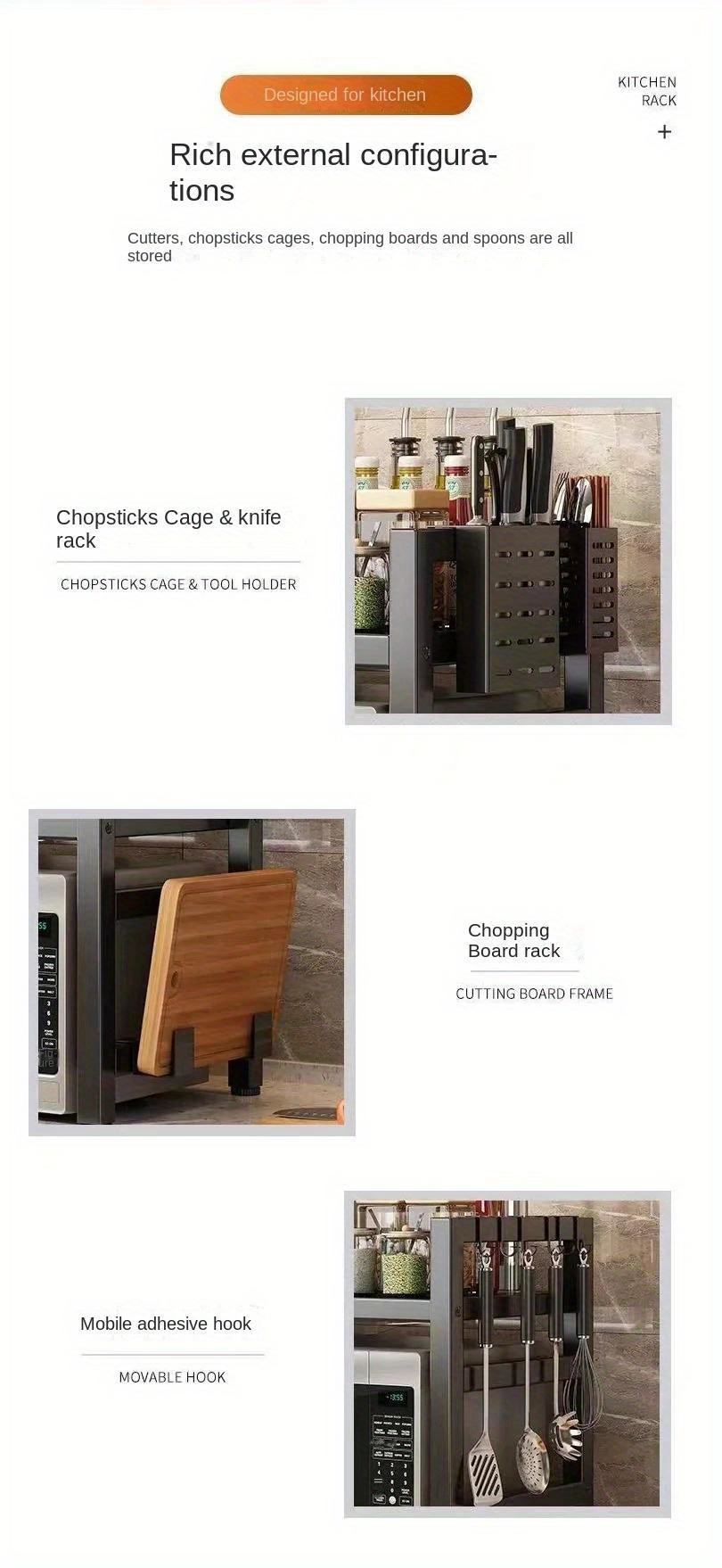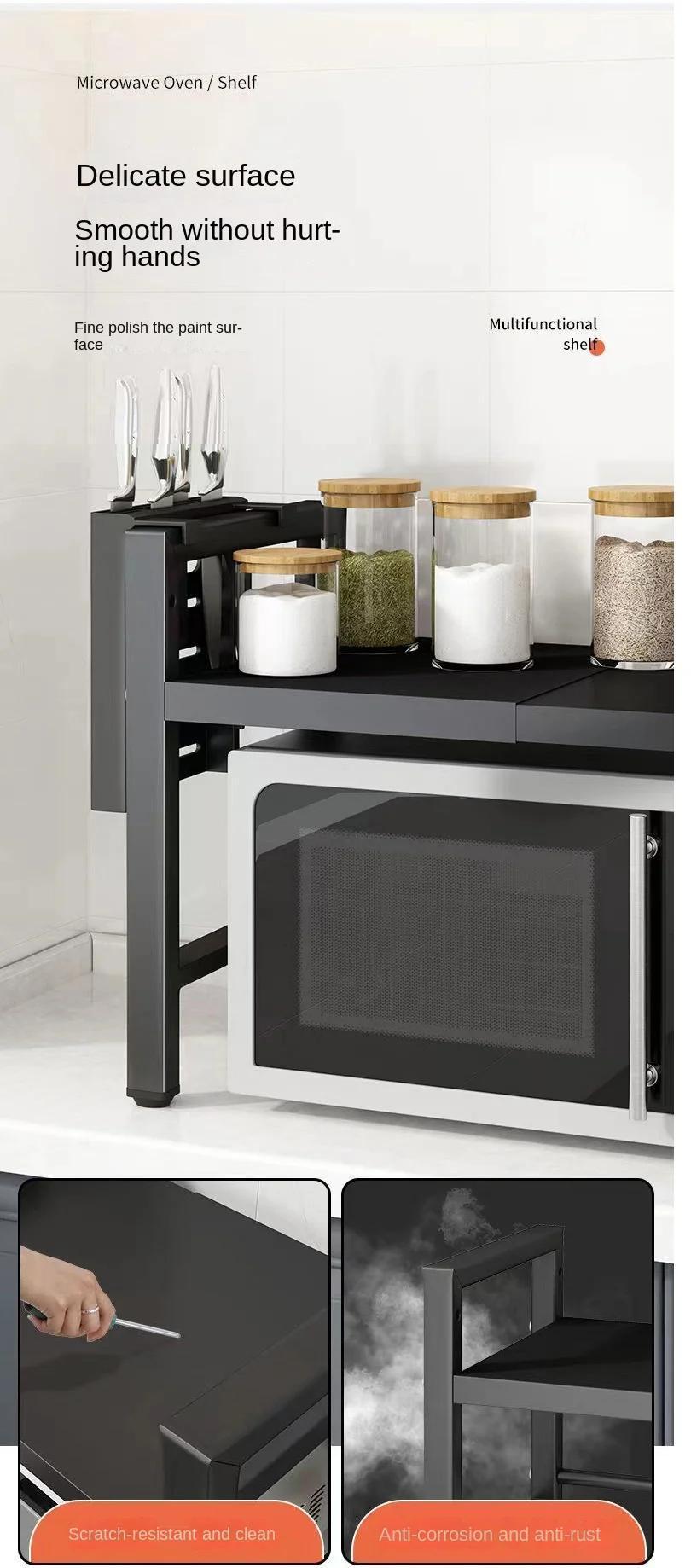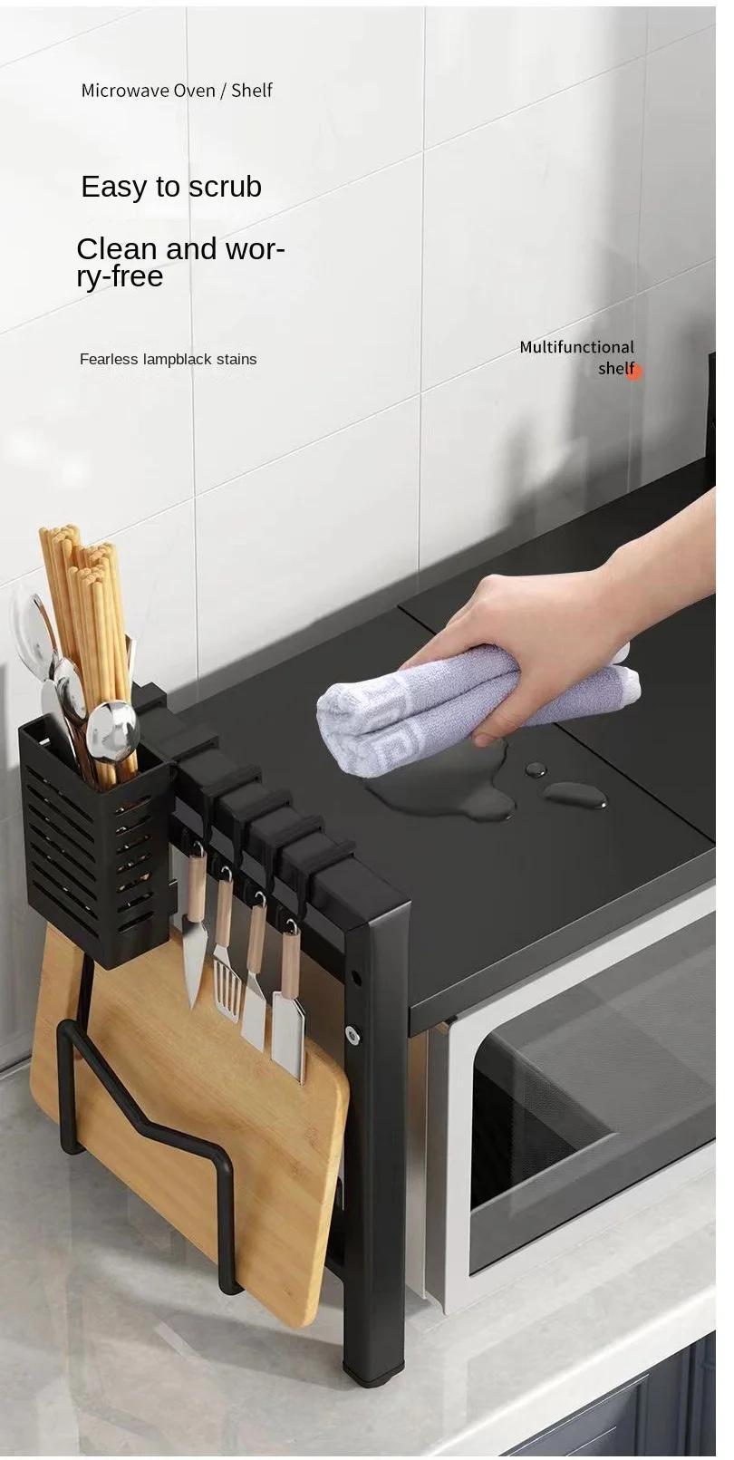 This rack is not only a practical storage solution for microwaves and small kitchen appliances, but it also serves as a convenient way to keep your kitchen organized by utilizing vertical space. Whether you have a small kitchen or a large household, this storage rack will help you keep your kitchen tidy, space-efficient, and easy to navigate.