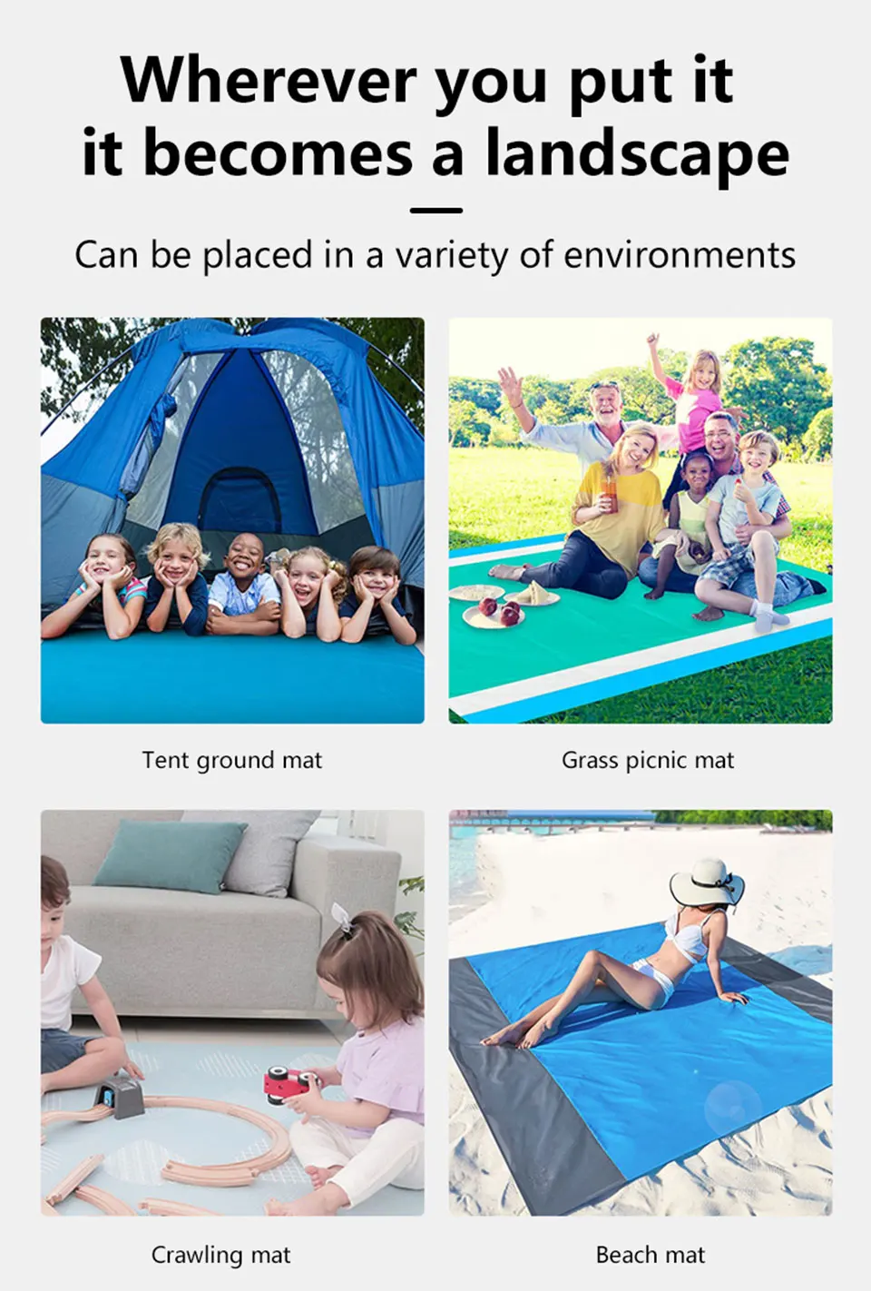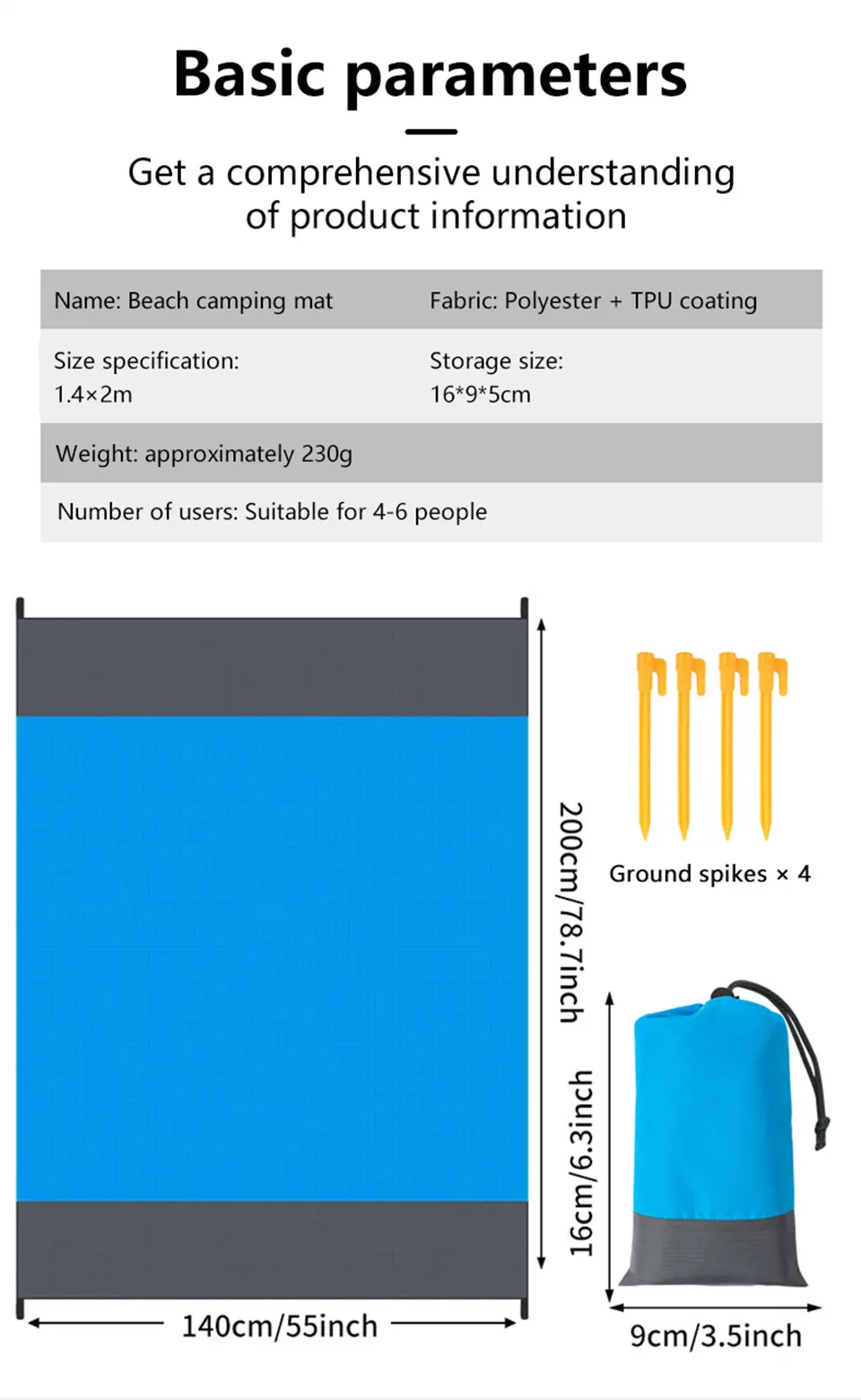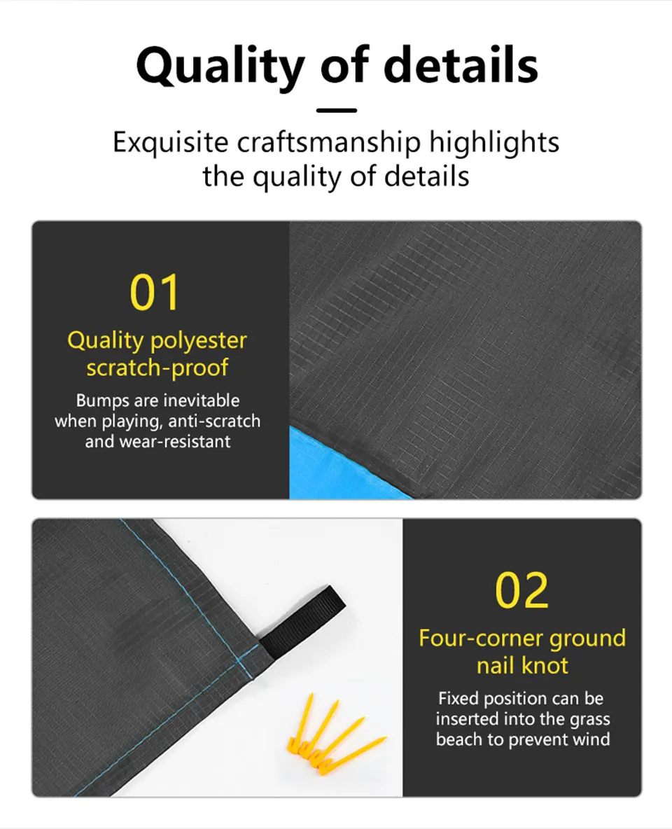 Comfortable fabric✦-the beach mat is made of high-quality fabrics, wear-resistant, heat-resistant, quick-drying, waterproof, sand-proof, extremely soft and comfortable, and can remain comfortable in any outdoor activities; suitable for family gatherings and playing with friends!